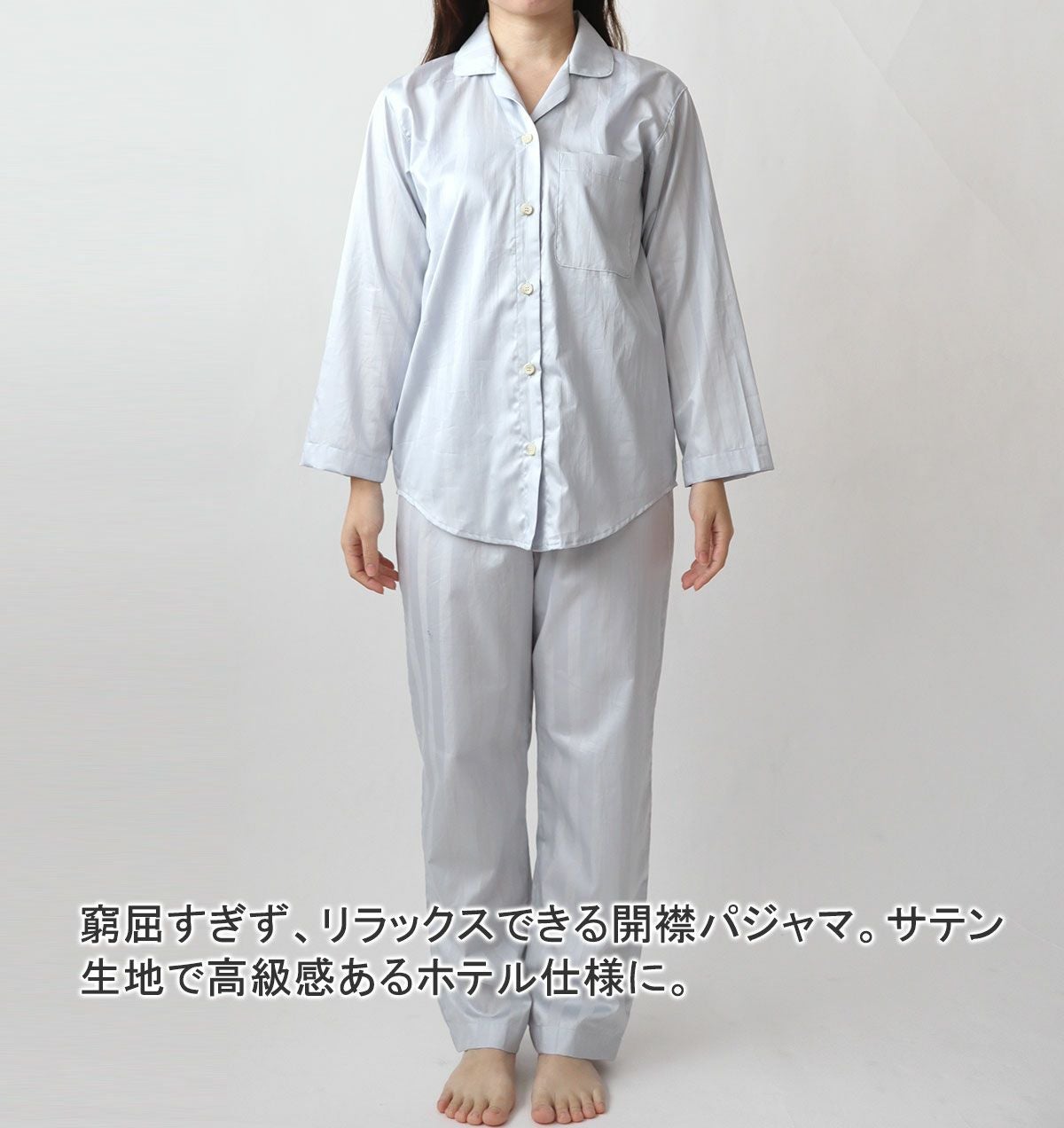 あのホテルのパジャマのよう、高級感あるサテンストライプ サテンストライプレディースパジャマ 上下セット・長袖/前開き/開襟 【オーダーメイド】