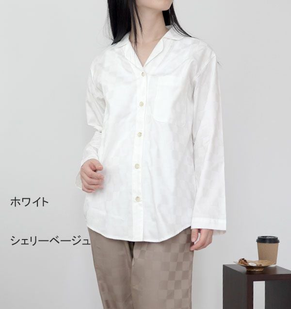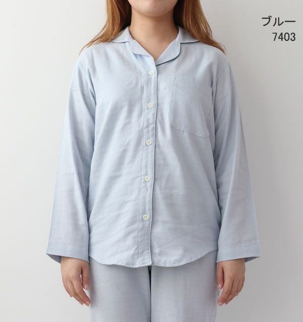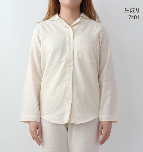 地球にもお肌にも優しい特別な風合い 40オーガニックコットンダブルガーゼレディースパジャマ上下セット・長袖/前開き/開襟 【オーダーメイド】