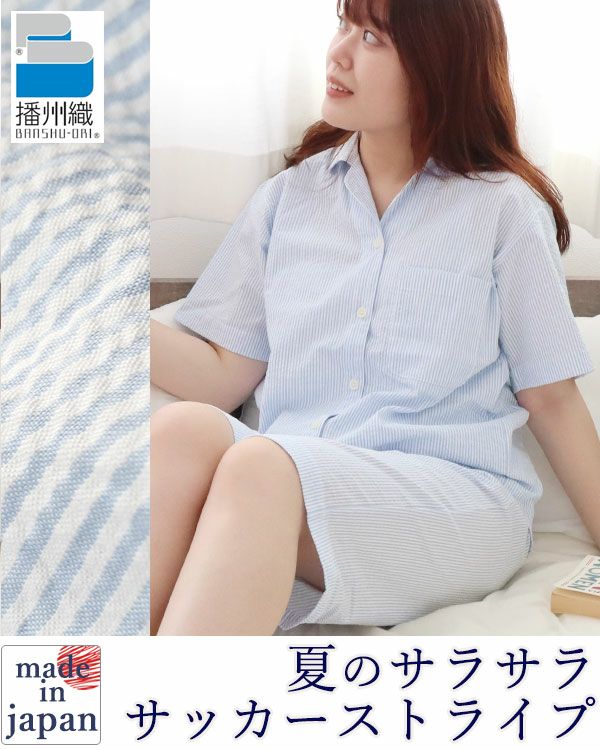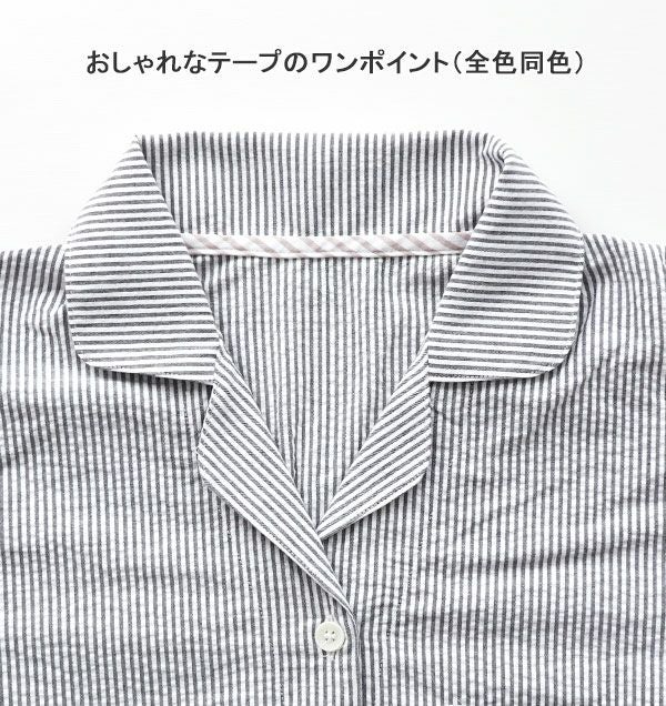 ポコポコ感でベタつかない!涼しい爽やかな夏 先染めサッカーストライプレディースパジャマ上下セット・半袖/前開き/短パン/開襟 【オーダーメイド】