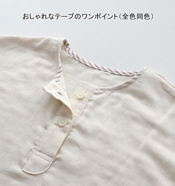 地球に優しいオーガニックコットンのダブルガーゼでバンドカラーデザインのレディースパジャマをお作りしました!柔らかな心地良い肌触りでちょっとそこまでの外出ができるおしゃれなルームウェアです!