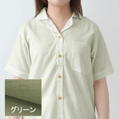 夏と言えば麻!ほどよいシャリ感と光沢で高級感のある近江ちぢみにレディース半袖開襟パジャマが登場です!首元すっきりなオープンカラーデザインは暑い季節にぴったり。爽やかなカラー展開で、目にも涼しいパジャマに仕上がりました♪