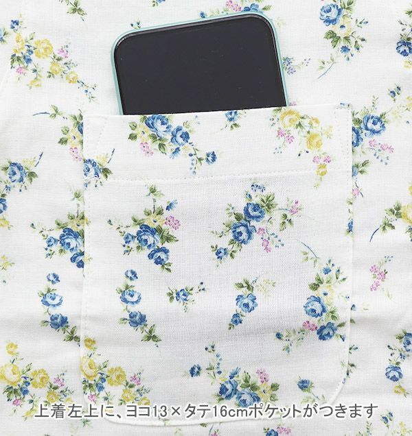 華やかなローズ柄をプリントしたダブルガーゼ素材のレディースパジャマ襟無しデザインの登場です!地球環境に優しいインクジェットで、柔らかな肌触りが心地良い素材で身も心もリラックスできる一枚です!