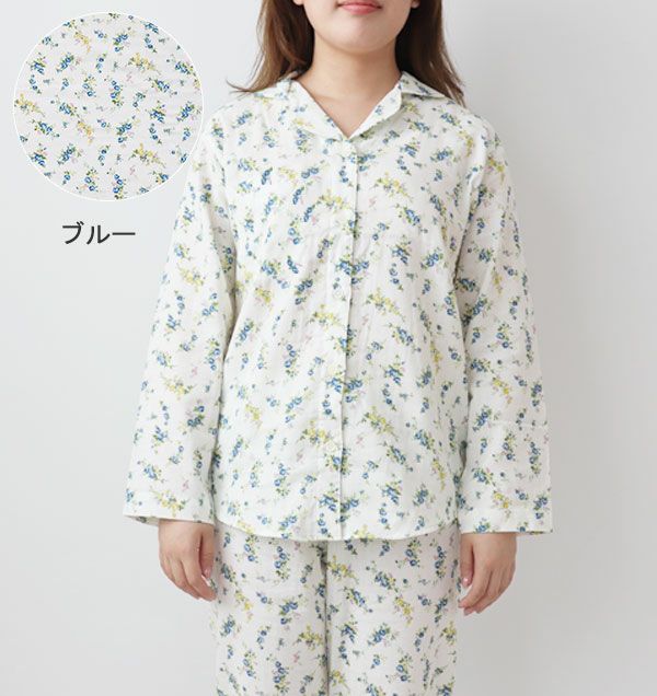 毛布なみの暖かさ!冬も使えるガーゼ 3重ガーゼレディースマタニティパジャマ上下セット・長袖/前開き/襟なし 【オーダーメイド】