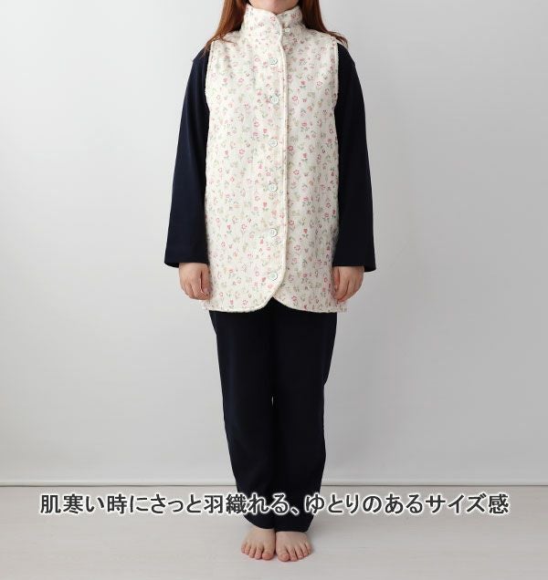 寝かせても立たせても着られる。特徴的なへちま襟がおしゃれで部屋着と兼用もできる。