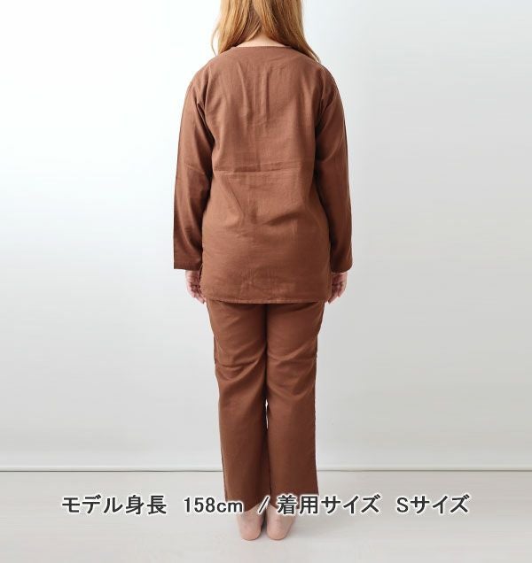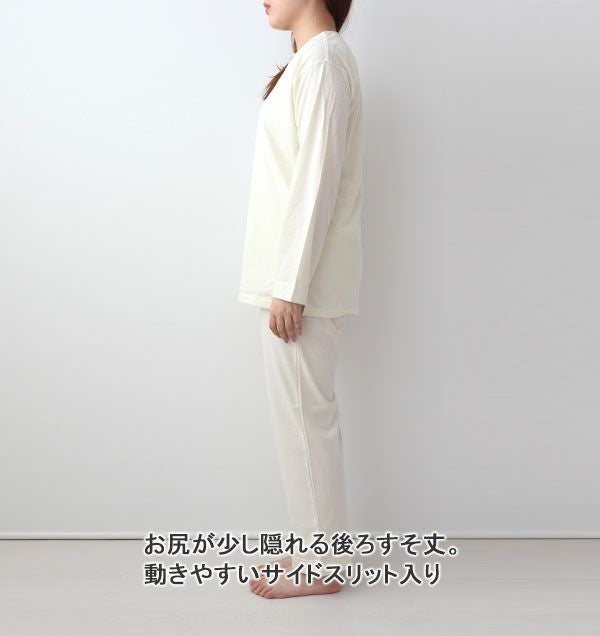 冬の乾燥対策に!椿油配合うるおいニット オーガニックコットンスムースニットレディースパジャマ上着単品・長袖/かぶり/襟なし 【オーダーメイド】