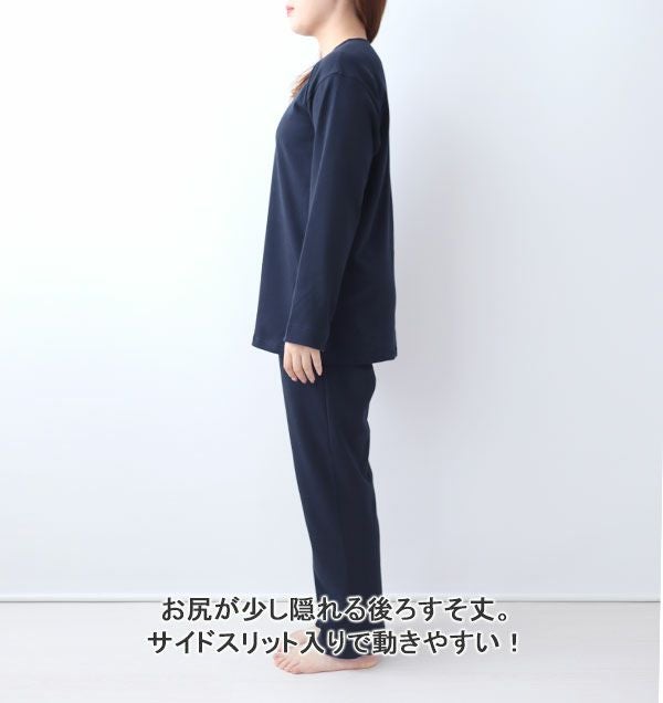 ルームウェア感覚で使える冬のストレッチニットレディースパジャマ上着単品で1日ゆったりあったかくXS,S,M,L,2L,3L,4L,5L展開【コットンスムース/綿100/日本製/長袖/襟なし/上着のみ】袖丈・着丈の長さ調整できる簡単セミオーダーサービス