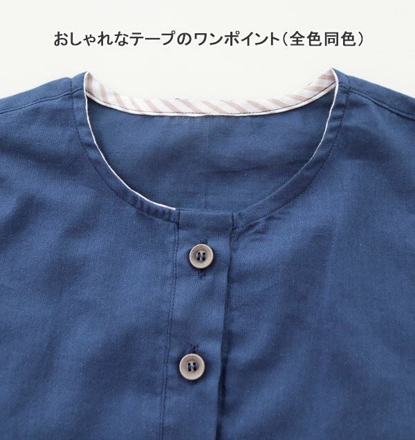 夏の定番!清涼感あるシボ加工でべたつかない 近江ちぢみ麻レディースパジャマ上着単品・半袖/かぶり/襟なし 【オーダーメイド】