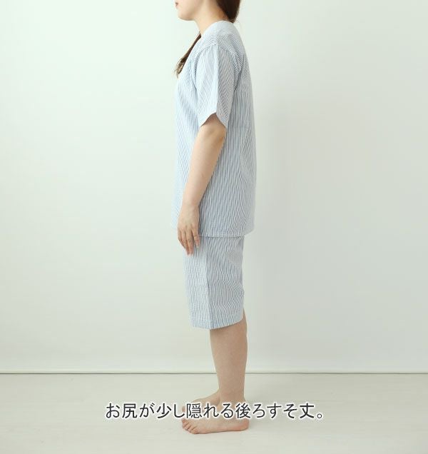 ポコポコ感でベタつかない!涼しい爽やかな夏 先染めサッカーストライプレディースパジャマ上着単品・半袖/かぶり/ヘンリーネック 【オーダーメイド】