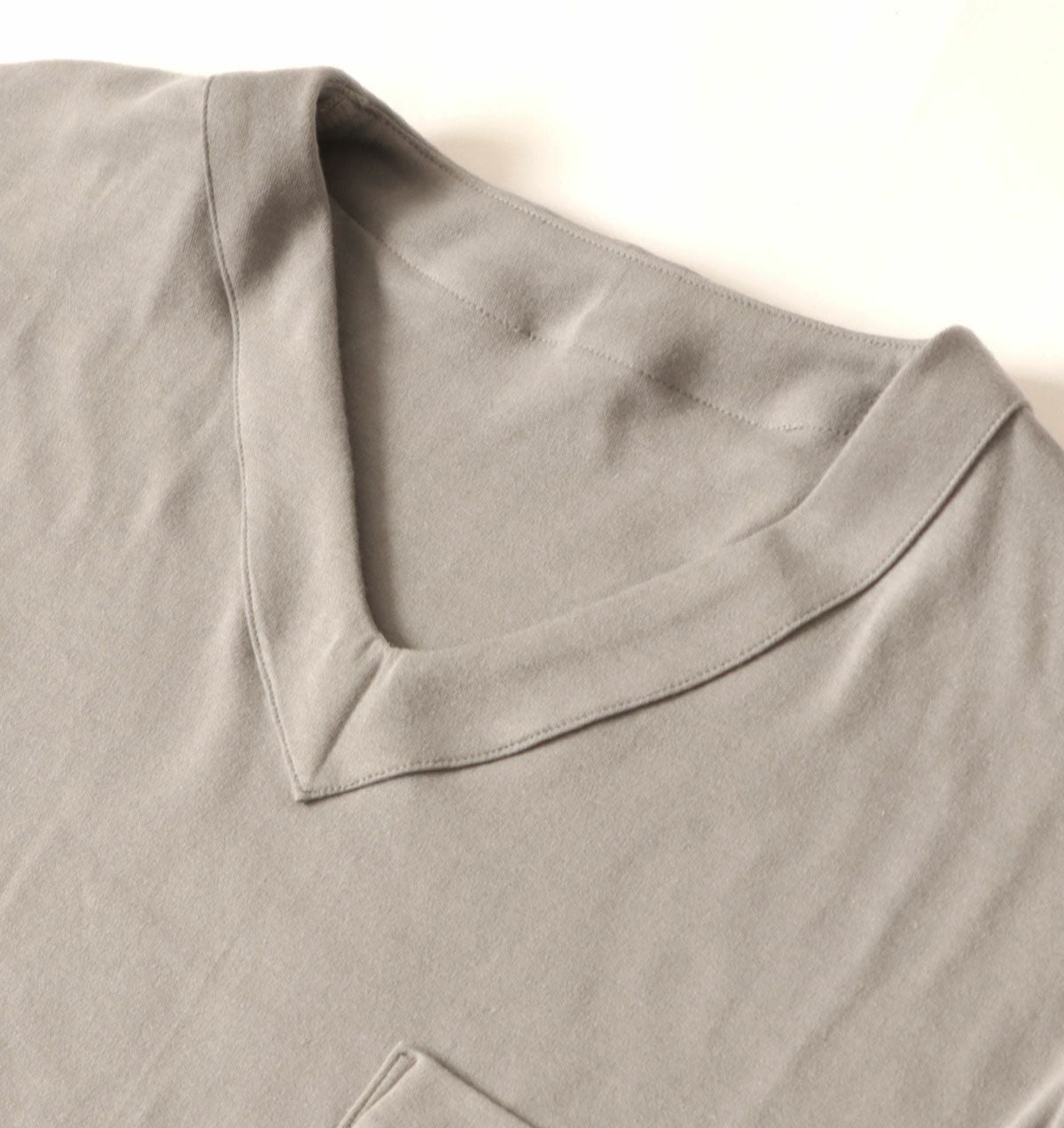 スーピマ超長綿のレディースVネック、ルームウェアとしても使えるパジャマ上着です。サテン織で美しい光沢、滑らかな肌触りで高級感たっぷり。お好みのボトムスを色々組み合わせて、自分だけのルームウェアが楽しめます。
