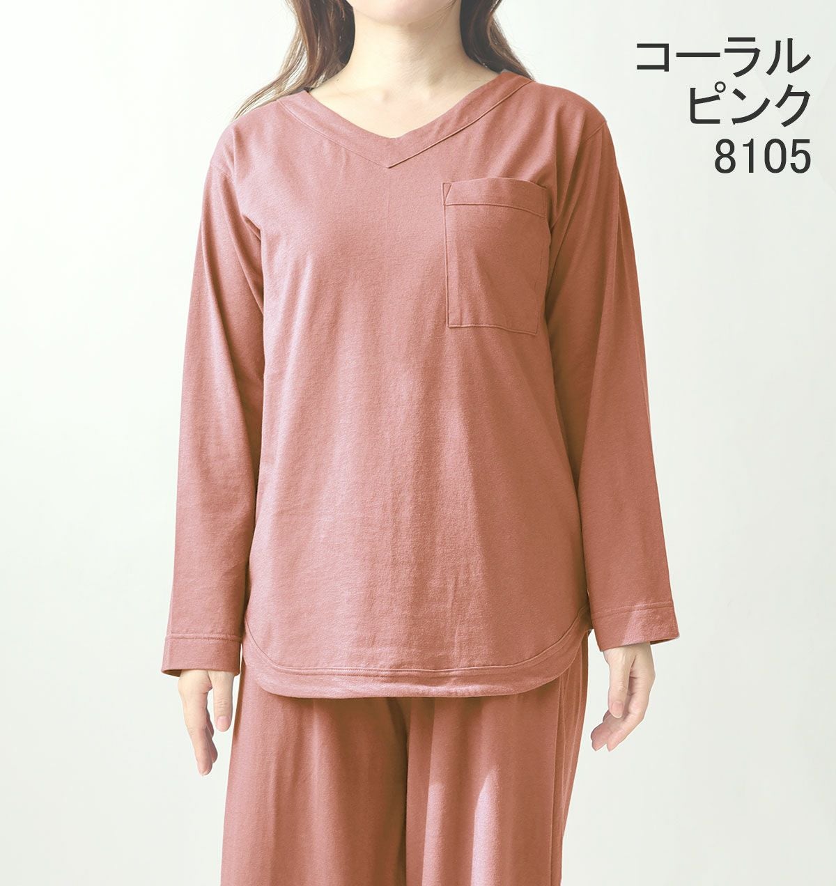 冬のお肌が喜ぶもっちりなめらかスムースニット コットンムースレディースパジャマ上着単品・長袖/かぶり/Vネック 【オーダーメイド】