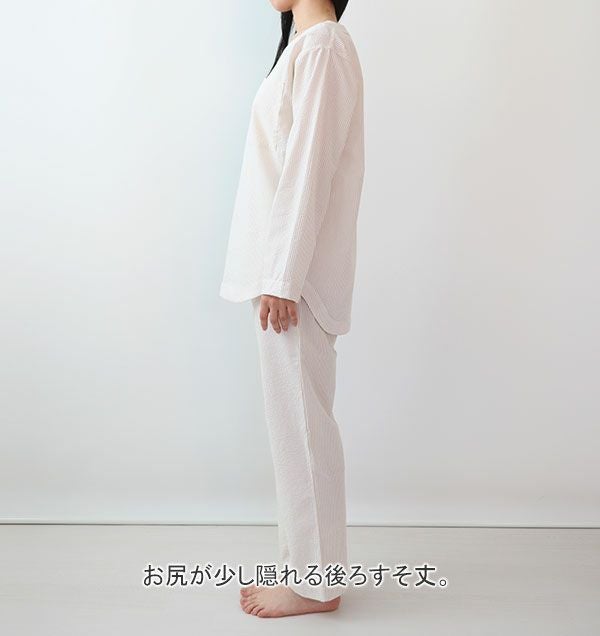 ポコポコ感でベタつかない!涼しく冷やさず快適な夏 先染めサッカーストライプレディースパジャマ上着単品・長袖/かぶり/Vネック 【オーダーメイド】