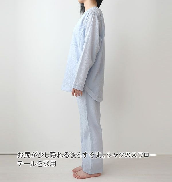 ふわっと軽やか、ベタつかない。夏の爽快パジャマ エアリーリップルレディースパジャマ上着単品・長袖/かぶり/Vネック 【オーダーメイド】