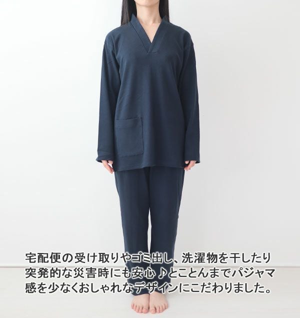 冬のお肌が喜ぶもっちりなめらかスムースニット コットンムースレディース作務衣下着単品・長袖/かぶり 【オーダーメイド】