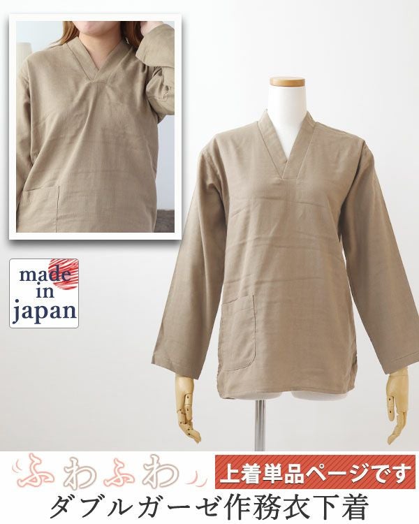 毛布なみの暖かさ!冬も使えるガーゼ 3重ガーゼレディース作務衣下着単品・長袖/かぶり 【オーダーメイド】