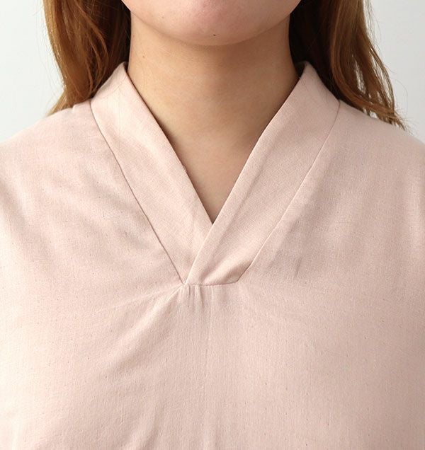 洗い加工のフランスリネンで優雅な夏を やわらかるいリネンレディース作務衣下着単品・長袖/かぶり 【オーダーメイド】