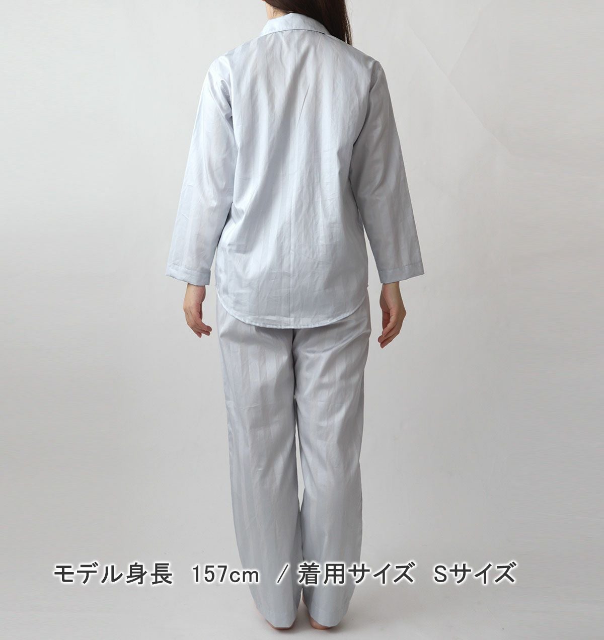 サテンストライプパジャマの上着単品です。レディースXS~5L。美しい光沢と柔らかくなめらかな肌触りで、高級ホテルで過ごすかのようなラグジュアリーなひとときを。綿100%なので吸湿性もよく、ほどよい保温性で春秋におすすめです。