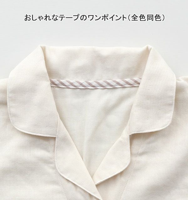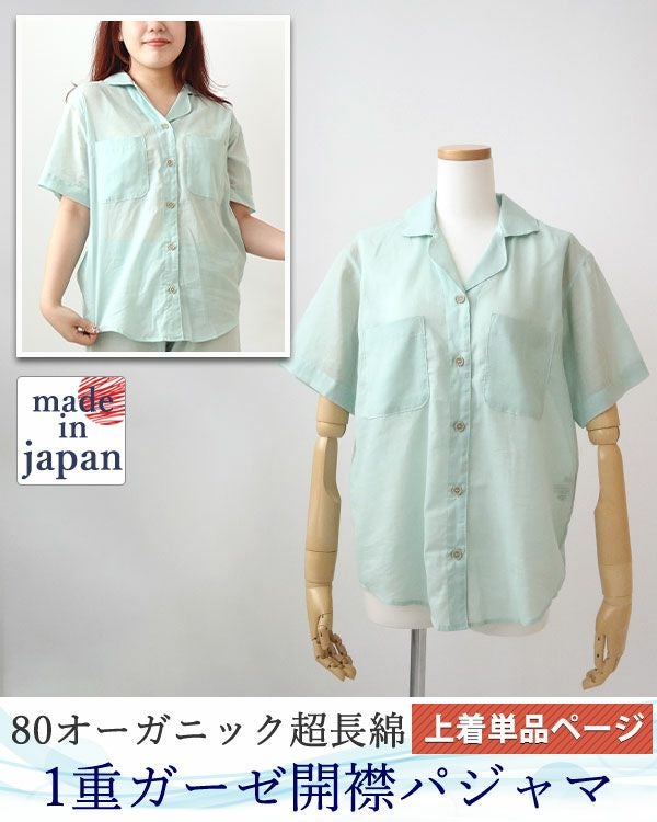 新感覚ガーゼ!柔らかいのにサラサラの肌触り 80オーガニック超長綿1重ガーゼレディースパジャマ上着単品・半袖/前開き/開襟 【オーダーメイド】