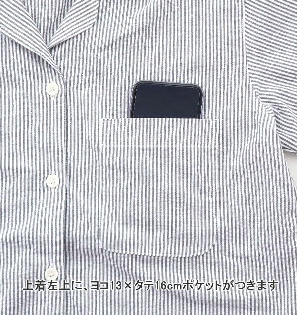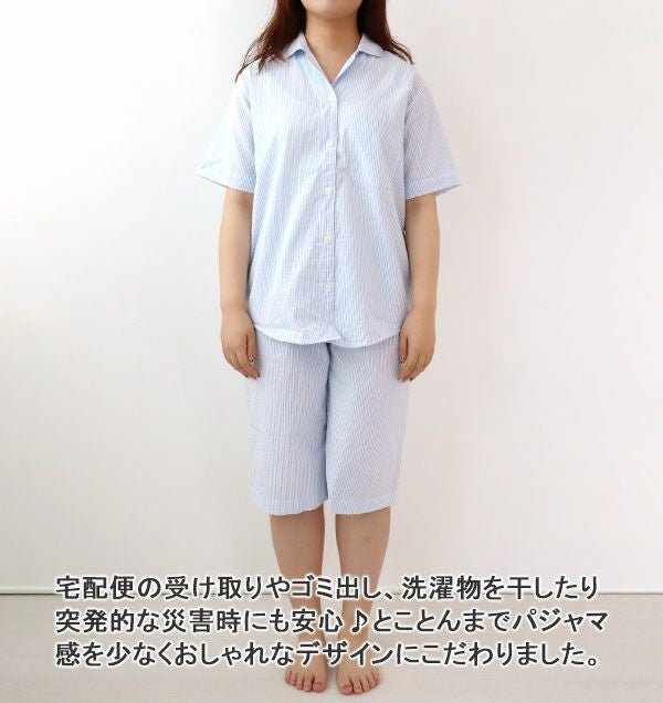 ポコポコ感でベタつかない!涼しい爽やかな夏 先染めサッカーストライプレディースパジャマ上着単品・半袖/前開き/開襟 【オーダーメイド】