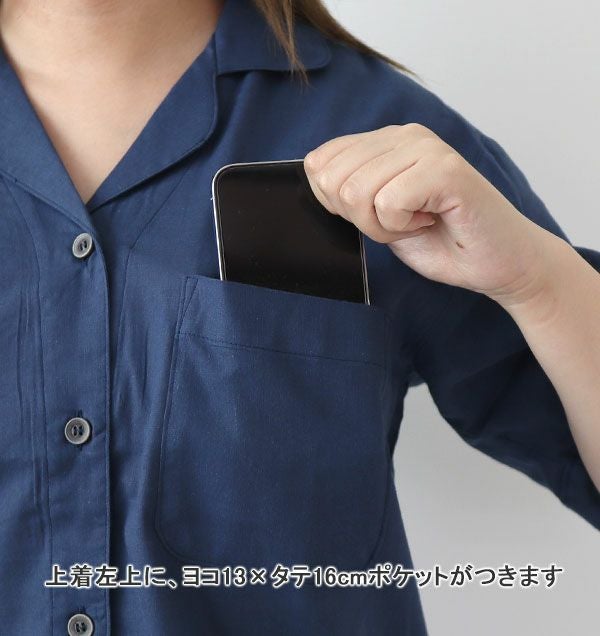 清涼感のあるシボ加工が夏にぴったりな近江ちぢみ麻のレディース開襟パジャマ上着単品ページです!抜け感のあるオープンカラーのパジャマは、体格のいい方にもすっきり着ていただけます。たくさん汗をかく夏の替えトップスにおすすめです♪