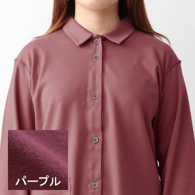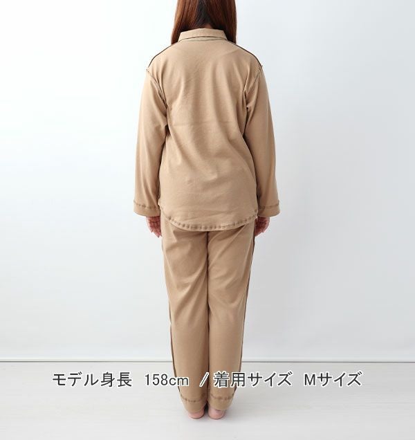 縫い目が外側で肌に当たらない仕様 コットンムースレディース敏感肌パジャマ上着単品・長袖/前開き/襟あり 【オーダーメイド】