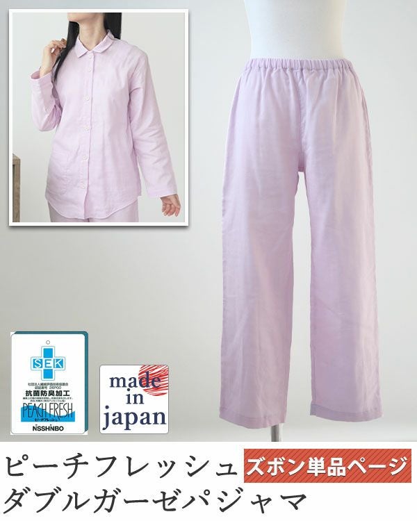 SEK取得の日清紡ピーチフレッシュ加工で清潔 抗菌防臭ダブルガーゼレディースパジャマズボン単品/長ズボン 【オーダーメイド】
