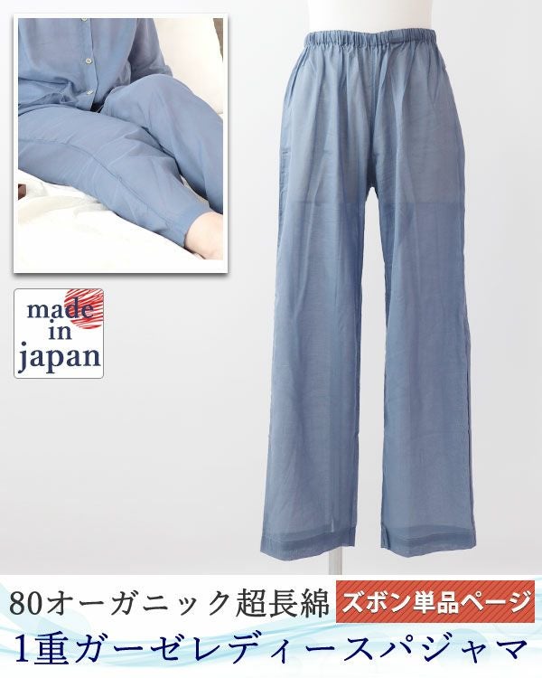 新感覚ガーゼ!柔らかいのにサラサラの肌触り 80オーガニック超長綿1重ガーゼレディースパジャマズボン単品・長ズボン 【オーダーメイド】