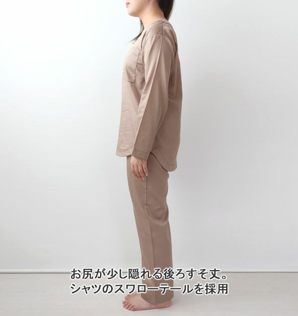 長袖、長ズボンのスタンダードな襟ありか、オーダー枕などをご使用の方は干渉しない襟なしタイプをお選びください。かぶりタイプはパジャマ感少な目のデザインを多くご用意しております。ルームウェア感覚でお楽しみください。