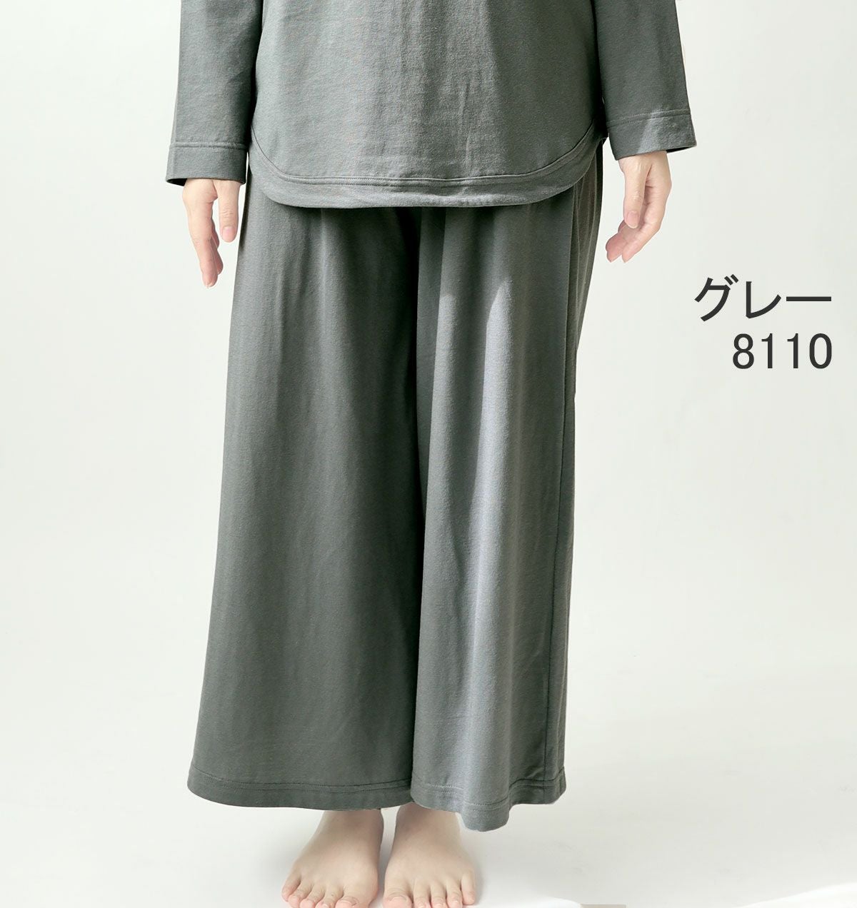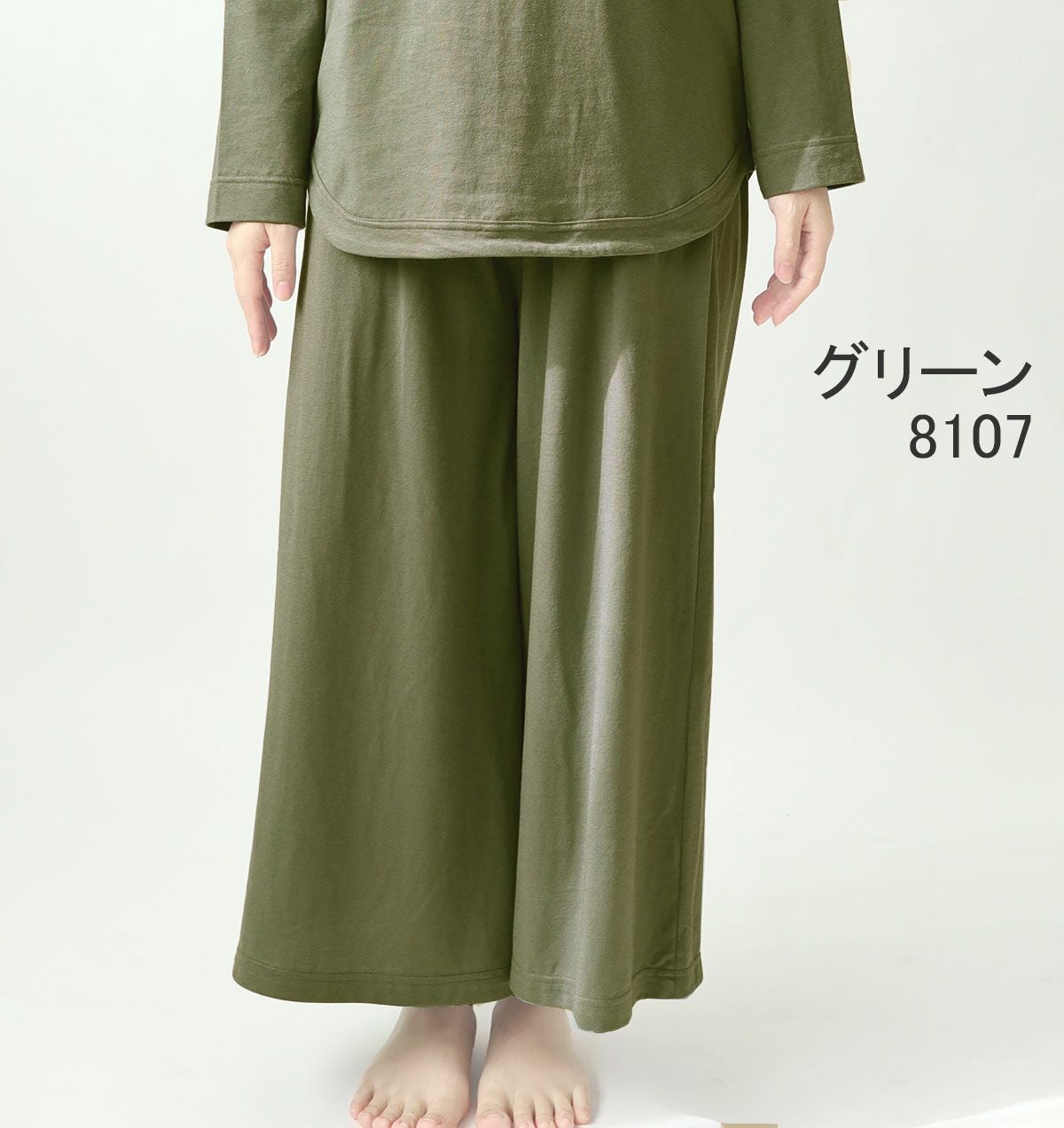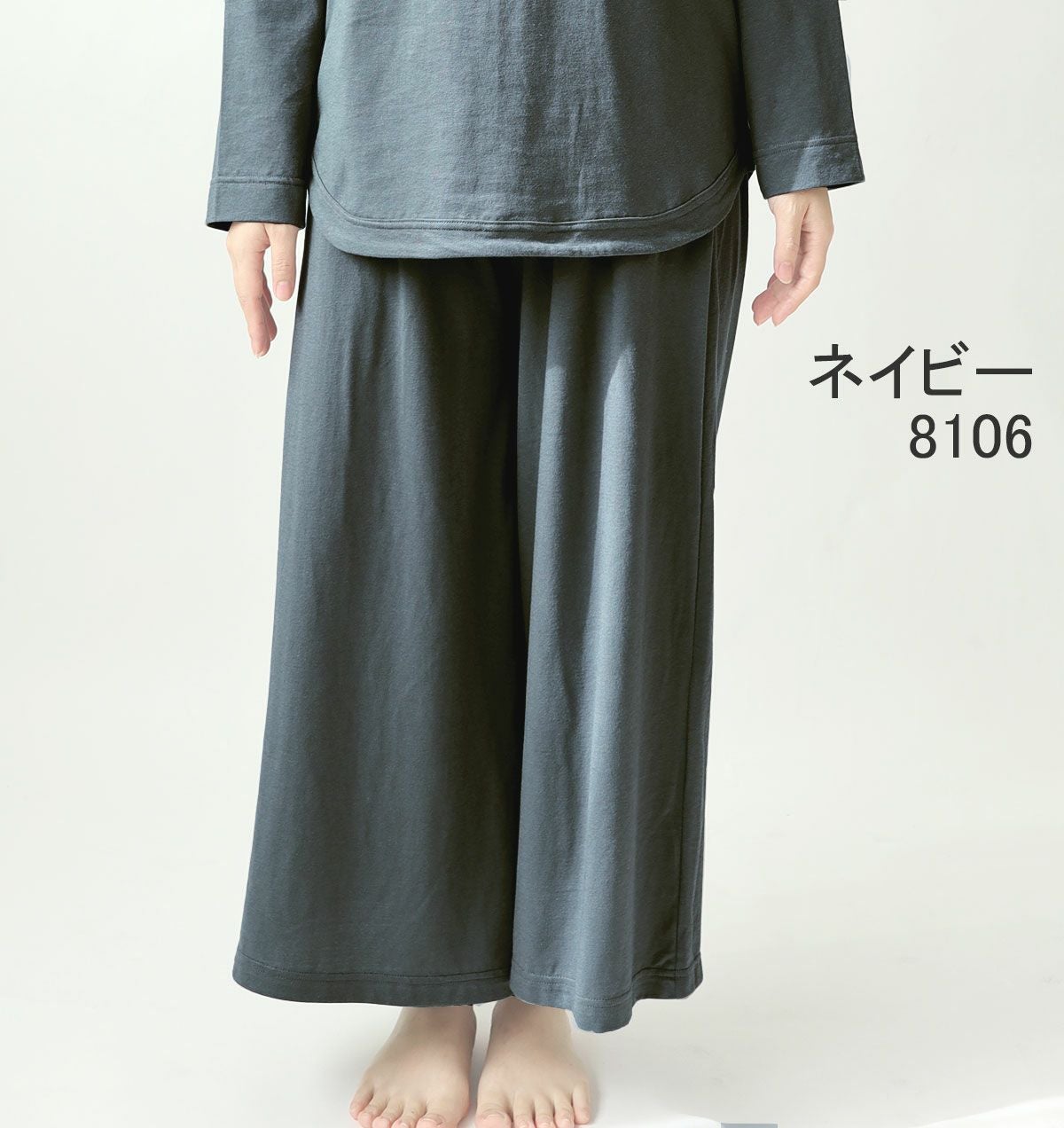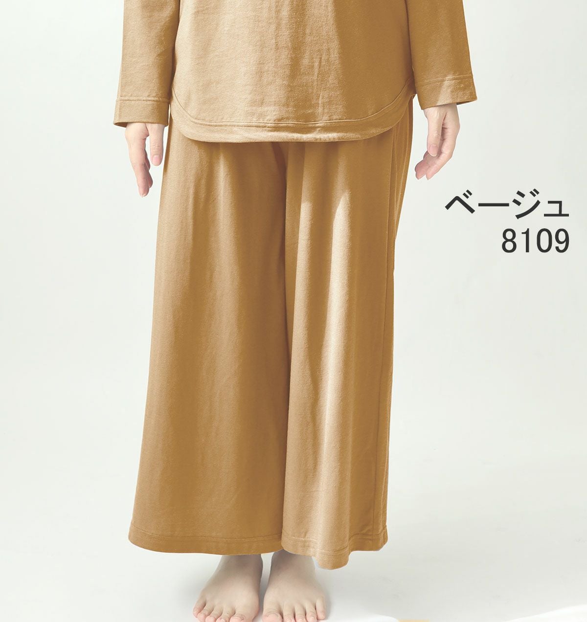 冬の乾燥対策に!椿油配合うるおいニット オーガニックコットンスムースニットレディースパジャマズボン単品・八分丈/ガウチョパンツ 【オーダーメイド】