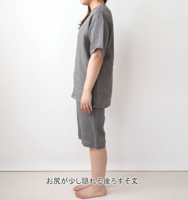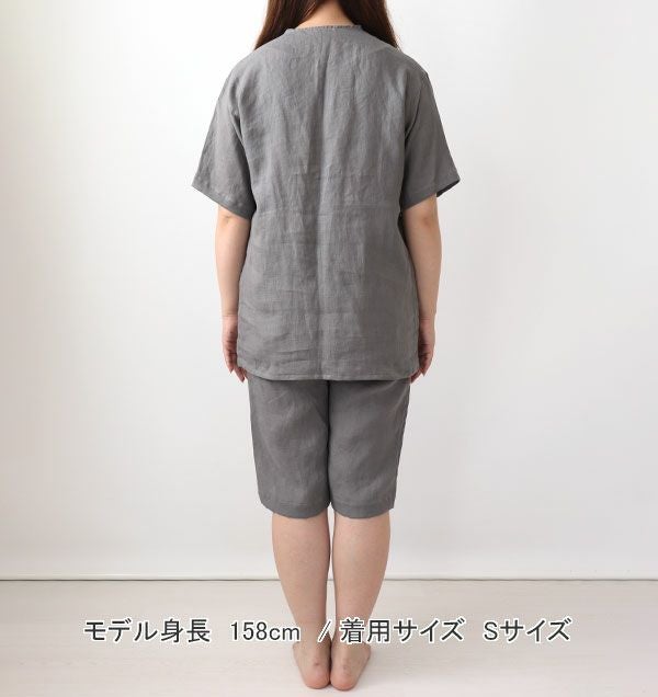 半袖短パンでひんやり優雅な夏を やわらかるいリネンレディースパジャマ上下セット・半袖/かぶり/ヘンリーネック/短パン 【オーダーメイド】