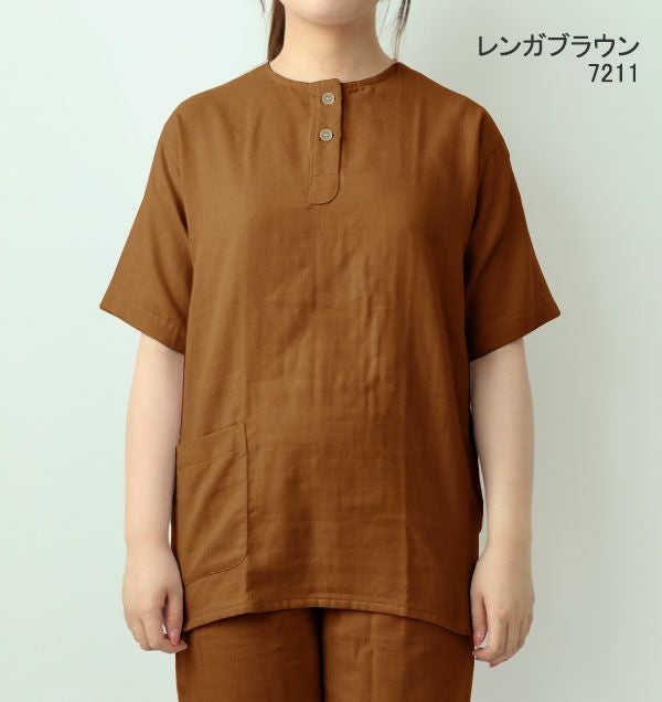 半袖短パンの1重ガーゼで真夏をのりきる! 真夏の超涼しいガーゼレディースパジャマ上下セット・半袖/かぶり/短パン/ヘンリーネック 【オーダーメイド】