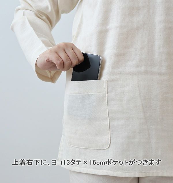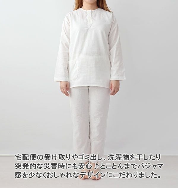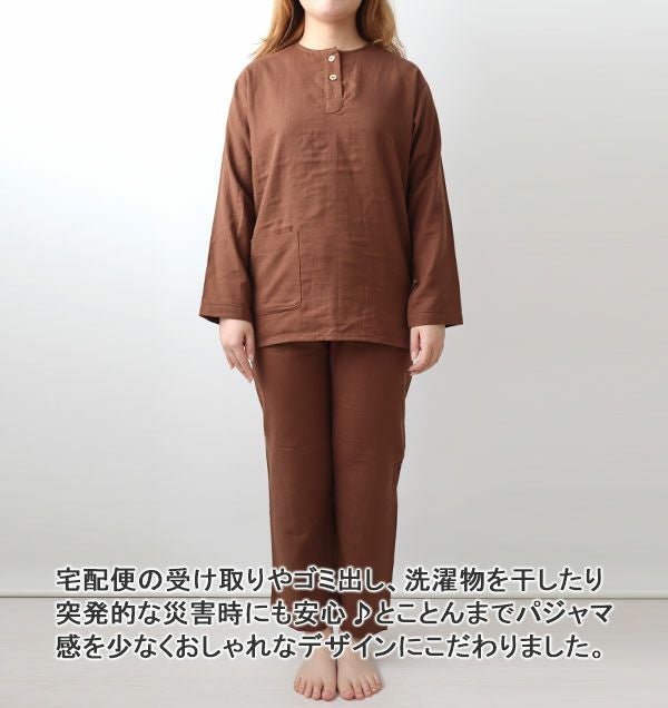 地球にもお肌にも優しい特別な風合い 40オーガニックコットンダブルガーゼレディースパジャマ上下セット・長袖/かぶり/ヘンリーネック 【オーダーメイド】