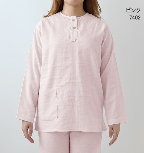 SEK取得の日清紡ピーチフレッシュ加工で清潔 抗菌防臭ダブルガーゼレディースパジャマ上下セット・長袖/かぶり/ヘンリーネック 【オーダーメイド】