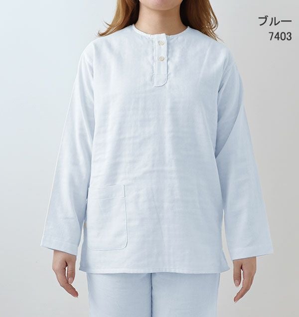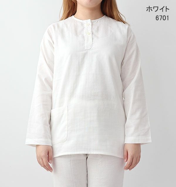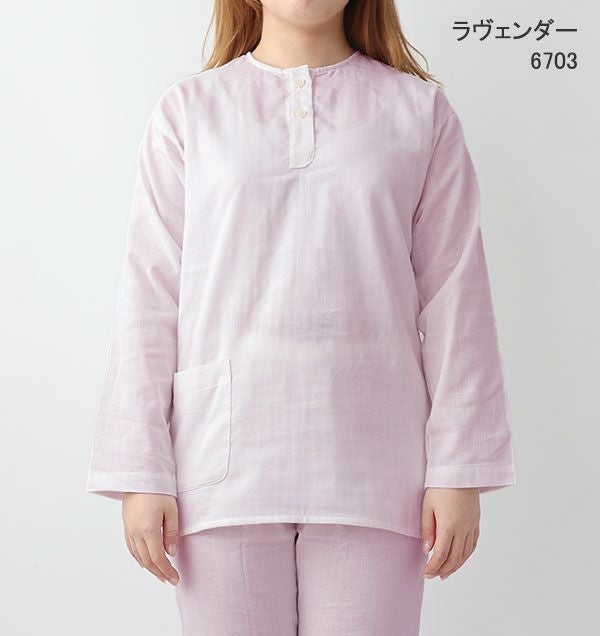 軽くて柔らかい極上ダブルガーゼ とろけるガーゼレディースパジャマ上下セット・長袖/かぶり/ヘンリーネック