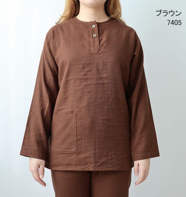 汗をよく吸い、べたつかない。さらっとソフトなタオルの肌触り 両面パイルニットレディースパジャマ 上下セット・長袖/かぶり/襟なし 【オーダーメイド】