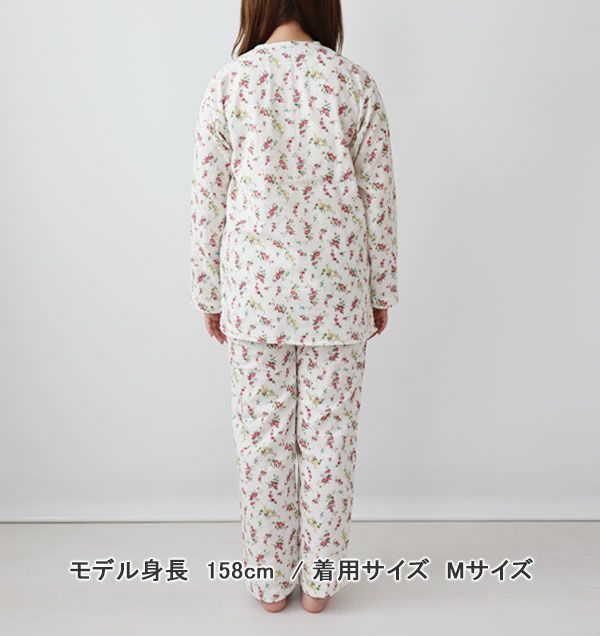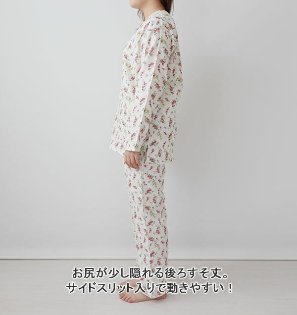 フレンチカジュアルなテイスト 花柄ダブルガーゼ-petit flora-レディースパジャマ上下セット・長袖/かぶり/ヘンリーネック【オーダーメイド】