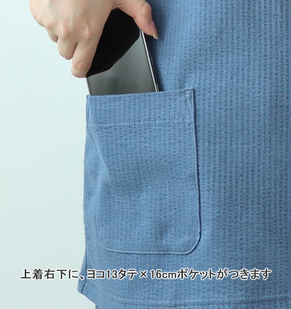 ふわっと軽やか、ベタつかない。涼しい爽快パジャマ 【改良版】エアリーリップルレディースパジャマ 上下セット・半袖/かぶり/短パン/ラウンドネック 【オーダーメイド】