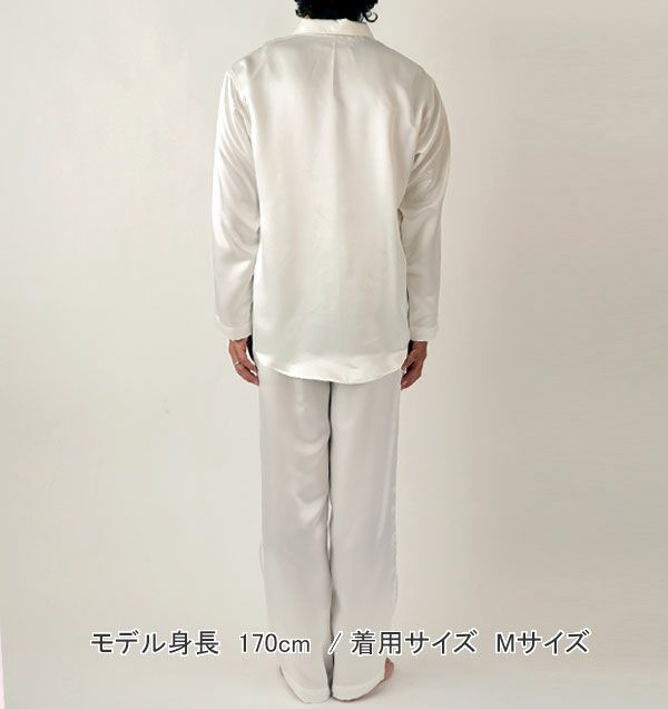 シルクは多孔質のため「夏涼しく、冬温かい」という温度調節の役割をもっています。綿に比べて吸水性、吸湿性が1.5倍でより蒸れを感じにくく、ほどよい保温性がありつつも、温度調整をしてくれるため、夏涼しく、冬温かい、一年中快適なスモールカラーパジャマとなっています。