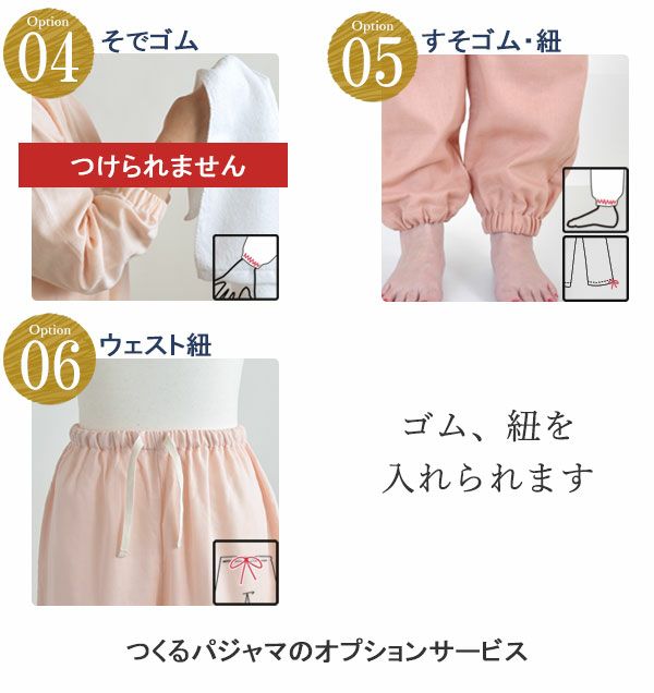 ※睡眠時に使用するので、ゆったり希望の方は、通信欄に「ゴム上がり、ワンサイズ大き目希望」とご記載ください。もちろん小さく縮めることもできます。