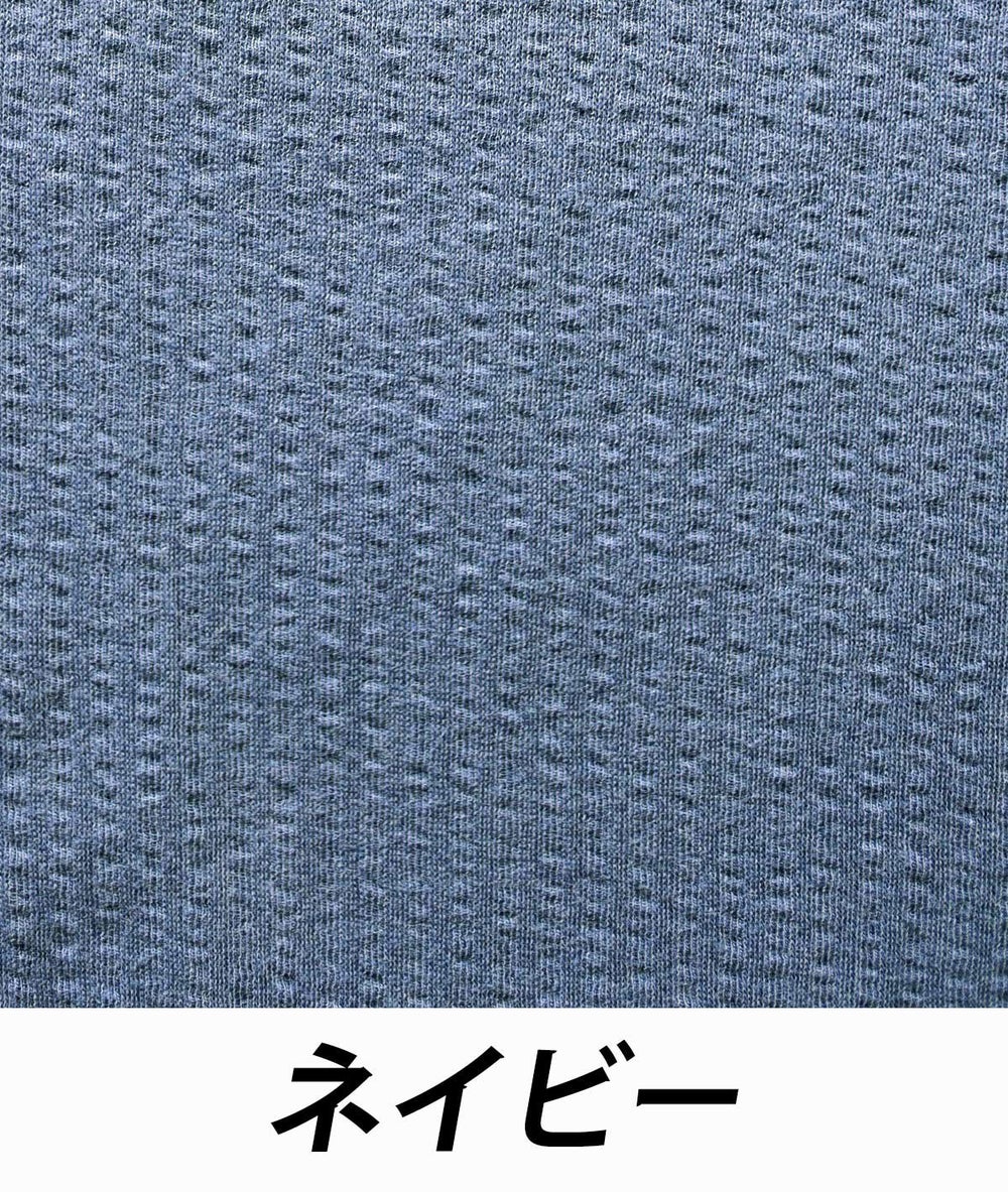 「夏に、肌触りのよい綿100%で伸縮性のある柔らかなニットで、涼しくて、べたつかない素材がほしい」というお客様のお声から、伸縮性のあるニット素材で夏でもはりつかず、べたつきにくいポコポコ凹凸のある素材を追求した、ニットサッカー生地が完成いたしました。