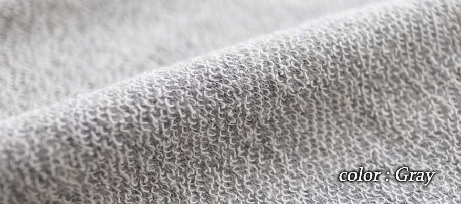 生地の裏側は裏毛(パイル地)になっており、ループによって体温をほどよく保ち、吸湿性にも優れています。お肌に直接触れるものだと起毛した裏起毛スウェットがふわふわと気持ちよいですが、重ねて着るルームウェアなどではパイル地がさらりとしていておすすめです。