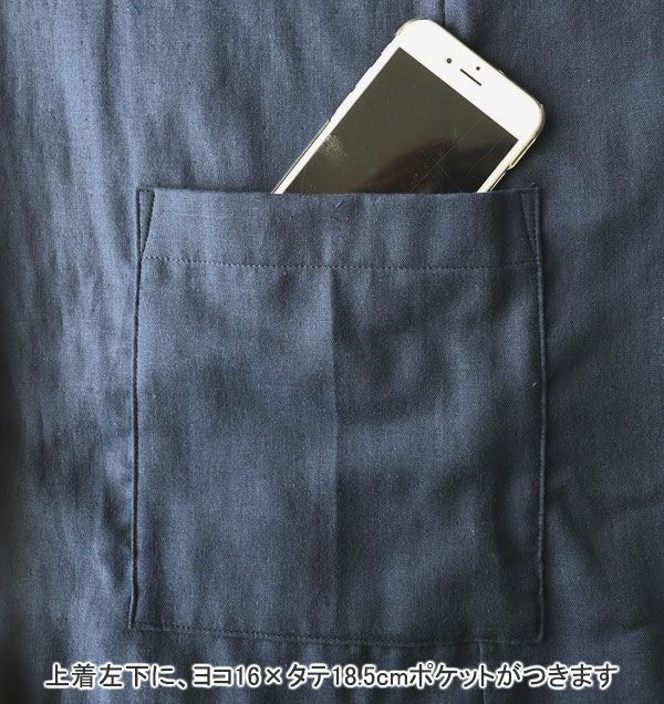 一般的な作務衣は7分丈のものが多いのですが、つくるパジャマの作務衣は上着は手首まで、ズボンも足首まである10分丈。朝晩の冷えから守ってくれます。オプションを選んで頂くと、作業がしやすいゴムも入れられます。ジャージよりきちんと感がでますので、ルームウェアに最適です