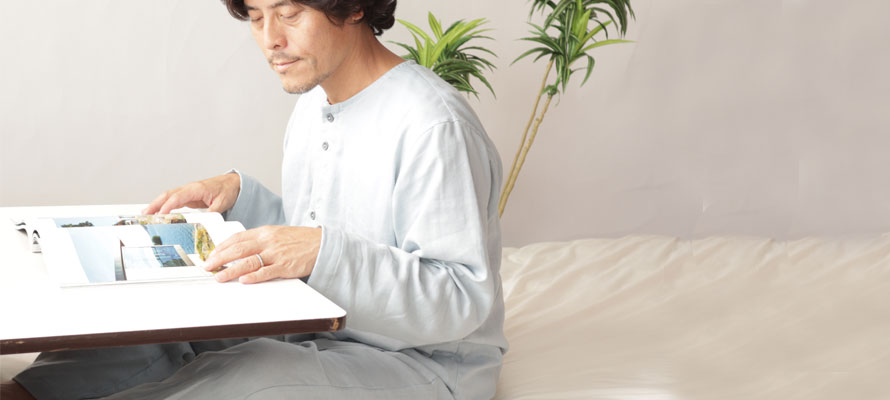 つくるパジャマでは、快眠に最適なコットン、リネン、シルクなどの天然素材のみを厳選し、さらに肌触りのよい生地にこだわっています。生地はほぼ全てオリジナルで、織りから、染め、仕上げ加工まで日本国内のものがほとんどです。直接、現地工場に足を運び、各分野のエキスパートに「こんなことできないか」と相談しながら生地を企画することもしばしば。とことん心地よい生地を追求しています。