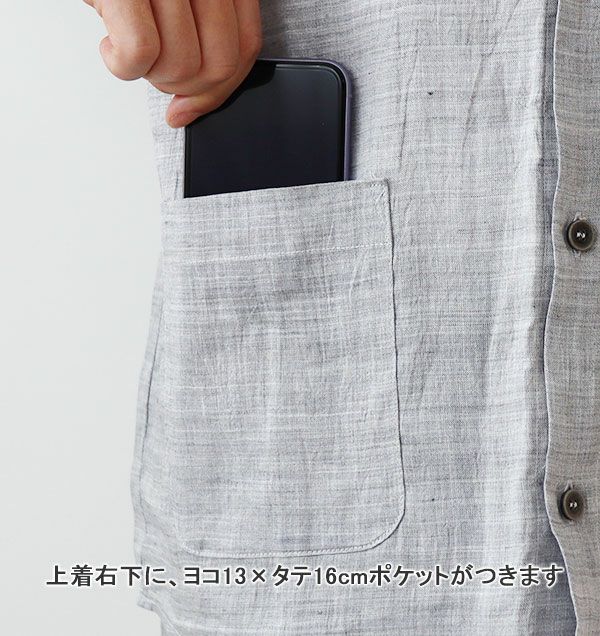| 素材 | 麻100% 近江ちぢみ ラミー(グレー、ネイビー、ミント、ベージュ、セージグリーンのみラミーリネン) |