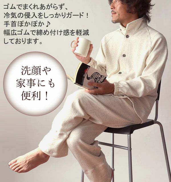 ぐっと寝室の気温が下がる冬には、保温性の高いパジャマがおすすめです。肌沿いが良く体温を逃がしにくいスムースニット生地や、ふわふわ起毛のスウェット生地、多層構造で暖かい空気層に包まれるガーゼ生地など、パジャマはもちろん、ベストやはんてん、肩当てなど前開きデザインのあったか羽織なども豊富にご用意しております。