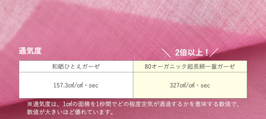 柔らかくお肌に優しい肌触りはそのまま、通気性と速乾性がアップした80オーガニック超長綿1重ガーゼは、寝汗をかいてもすぐ乾くので、翌朝までべたつきを抑えてサラサラの肌触りが続きます!また、今までのガーゼより約37%も軽く、まるで着ていないかのような着心地は一度着たらやみつきに♪