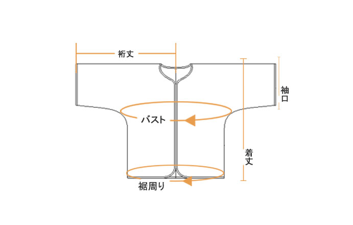 ※着丈はうしろ襟ぐり付け根の中心から裾までです。お歳を召すと、背中がまがってきますので、着丈は若干の余裕があっても心配ないかと存じます。