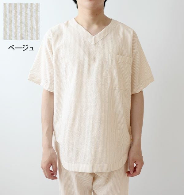他の画像を見る ポコポコ感でベタつかない!涼しい爽やかな夏 先染めサッカーストライプメンズパジャマ 上下セット・半袖/かぶり/Vネック 【オーダーメイド】 夏 綿 【税込価格】 ¥ 10,890 税込 ポコポコした生地表面ではりつかずに快適なサッカー素材のメンズパジャマです!おしゃれな先染ストライプのVネックデザイン、半袖で涼感たっぷりのルームウェアにもおすすめです。 (0) 詳細を見る お気に入りに登録する