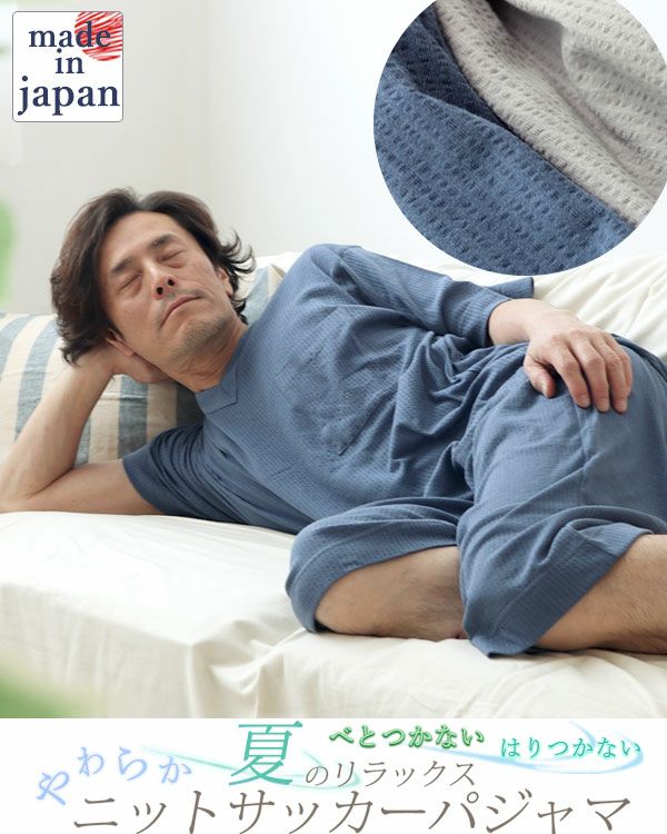他の画像を見る べたつかない、夏のやわらかリラックス ニットサッカーメンズパジャマ 上下セット・半袖/かぶり/短パン/襟なし 【オーダーメイド】 夏 綿 ニット 【税込価格】 ¥ 13,090 税込 べたつかなくて、柔らかいリラックスした着心地のニットサッカーパジャマです。メンズXS~5Lまで。半袖ヘンリーネック、短パンデザインで夏のルームウェアとしても最適です。綿100%で蒸れずに快適。袖丈、股下を調整できるセミオーダーメイド対応です。 5.00 (2) 詳細を見る お気に入りに登録する