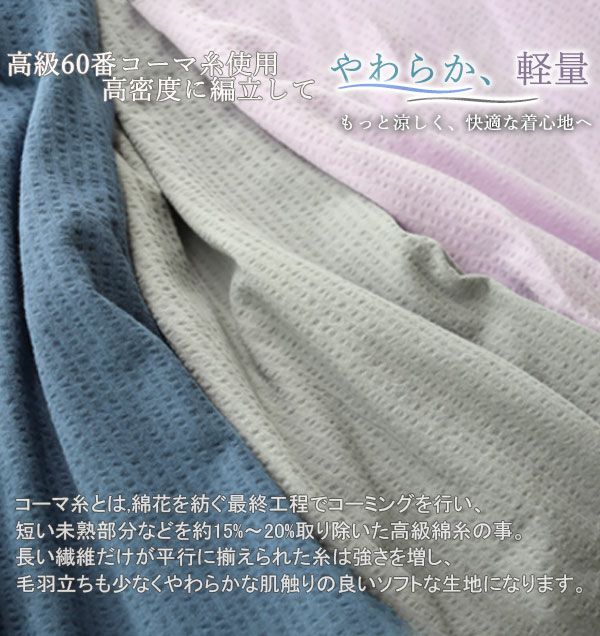 他の画像を見る ふわっと軽やか、ベタつかない。暑がりの方におすすめ涼しい爽快パジャマ エアリーリップルメンズパジャマ 上下セット・半袖/かぶり/短パン/襟なし 【オーダーメイド】 夏 綿 【税込価格】 ¥ 9,570 税込 ふわっと軽くてべたつかない夏のリップルパジャマのメンズXS~12L。綿100%、80番手の極細糸を使用し、薄手で涼しく、何より軽く、柔らかいのが特徴です。半袖短パンなので、とにかく暑がりの方におすすめ。 4.00 (1) 詳細を見る お気に入りに登録する