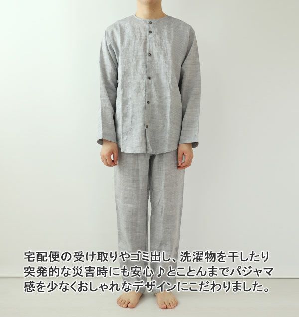 他の画像を見る 真冬に着る、ふっかふかガーゼケット コットンウール6重ガーゼメンズパジャマ 上下セット・長袖/前開き/襟なし 【オーダーメイド】 冬 送料無料 綿 ガーゼ 【税込価格】 ¥ 24,750 税込 寒がりな方に嬉しい、抜群の保温力の6重ガーゼのメンズパジャマです。心地よい肌触りはさることながら、ウール混なので優れた吸湿性で蒸れにくく快適です。着脱がしやすく便利な前開きタイプです。 4.83 (6) 詳細を見る お気に入りに登録する